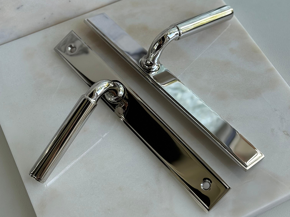 Ручка для балконной двери на узкой планке Frank Allart 7773597E01AA полированный никель